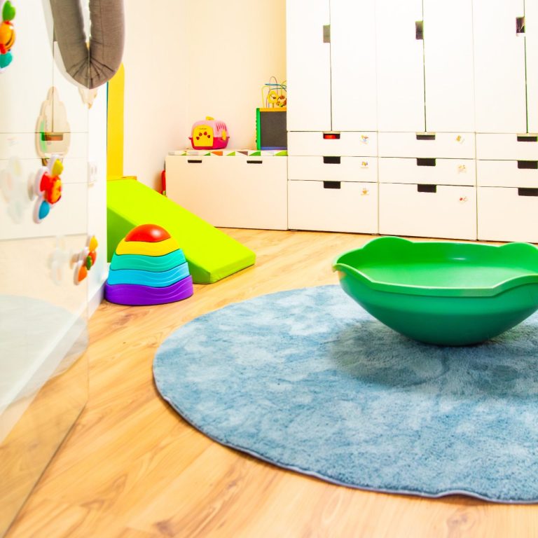 Bei den Dorfzergen gibt es ein lehrreiches, kindgerechtes und einladendes Spielzimmer. Darin sind zum Beispiel eine Ecke zum Klettern und Toben, ein Montessori-inspirierter Spielzeugaufbau und eine phantasieanregende Leseecke.